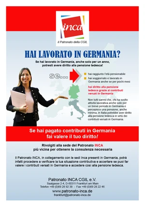 Il Patronato della Cgil, presente in Germania con diversi uffici,  avvia una campagna di sensibilizzazione rivolta agli italiani, che nel corso della loro carriera abbiano lavorato in suolo tedesco, affinché facciano valere i diritti acquisiti, di cui spesso non sono a conoscenza.
